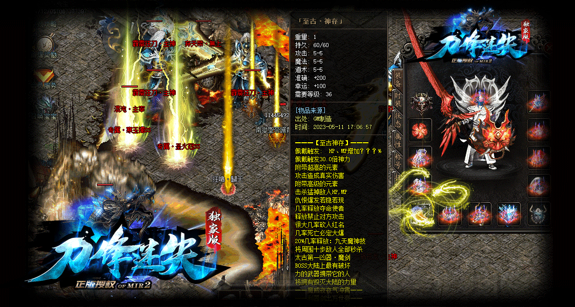 【游戏介绍】:上线免费赠送12转,直接召唤3只人形怪BB,增加7大神器,5大至天魔宝,未知挑战等你探索!