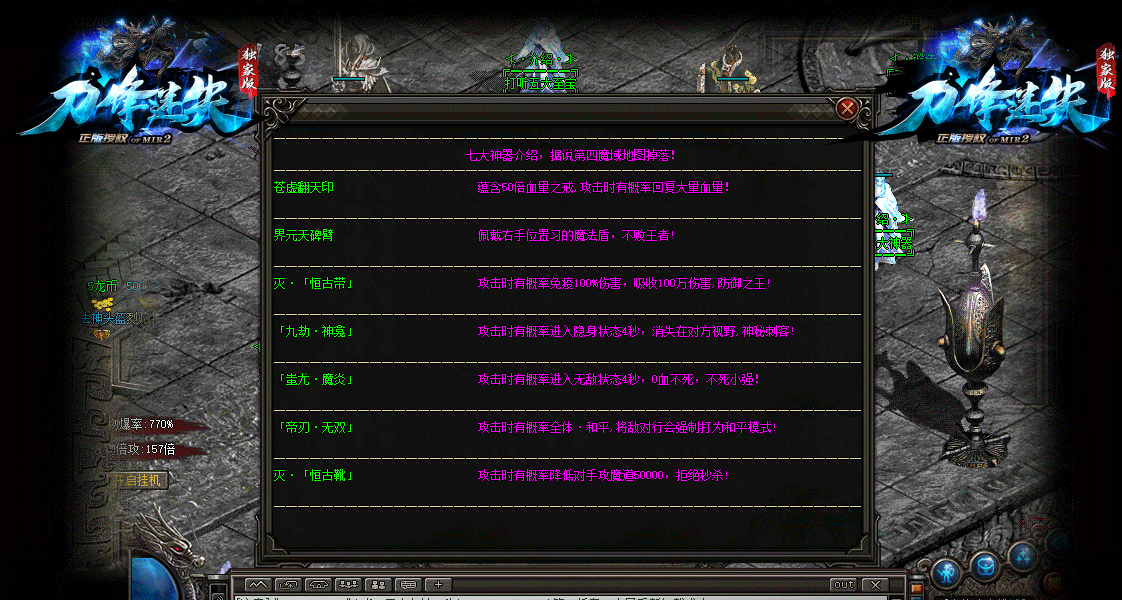《刀锋迷失》·经典复古迷失,上线赠送3只人形怪BB,7大远古神器,5大至天魔宝,未知挑战等你探索